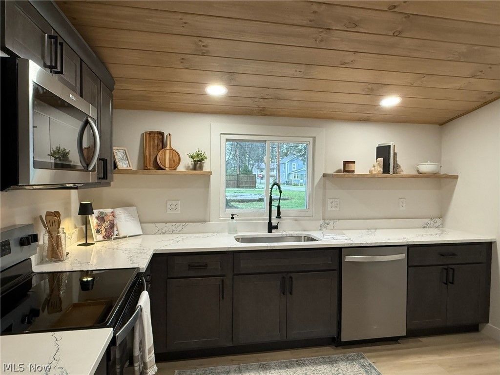 Completely reimagined through a full gut renovation, this exceptional Dover residence blends modern design with timeless character. Offering 4 bedrooms and 1.5 bathrooms, the home features a thoughtfully designed layout with first-floor living convenience, including a bedroom, full bath, and laundry. The kitchen serves as a stunning focal point, highlighted by sloped ceilings finished in rich wood tongue-and-groove, quartz countertops, and a full suite of new stainless-steel appliances. The adjoining main bath echoes this elevated design with matching wood ceilings, creating a warm yet refined aesthetic. The upper level offers three spacious bedrooms with ample closet space and a stylish half bath wrapped in wood accents for a cozy feel. Plush carpeting enhances comfort in the bedrooms, while luxury vinyl plank flooring flows seamlessly throughout the main living areas. No detail has been overlooked, with extensive upgrades including new windows, electrical, plumbing, central air, roof, siding, doors, and a new submersible well pump?providing peace of mind for years to come. Positioned on a desirable corner lot in Dover, the property features a level yard ideal for outdoor enjoyment, complemented by a mature shade tree that adds both beauty and privacy.