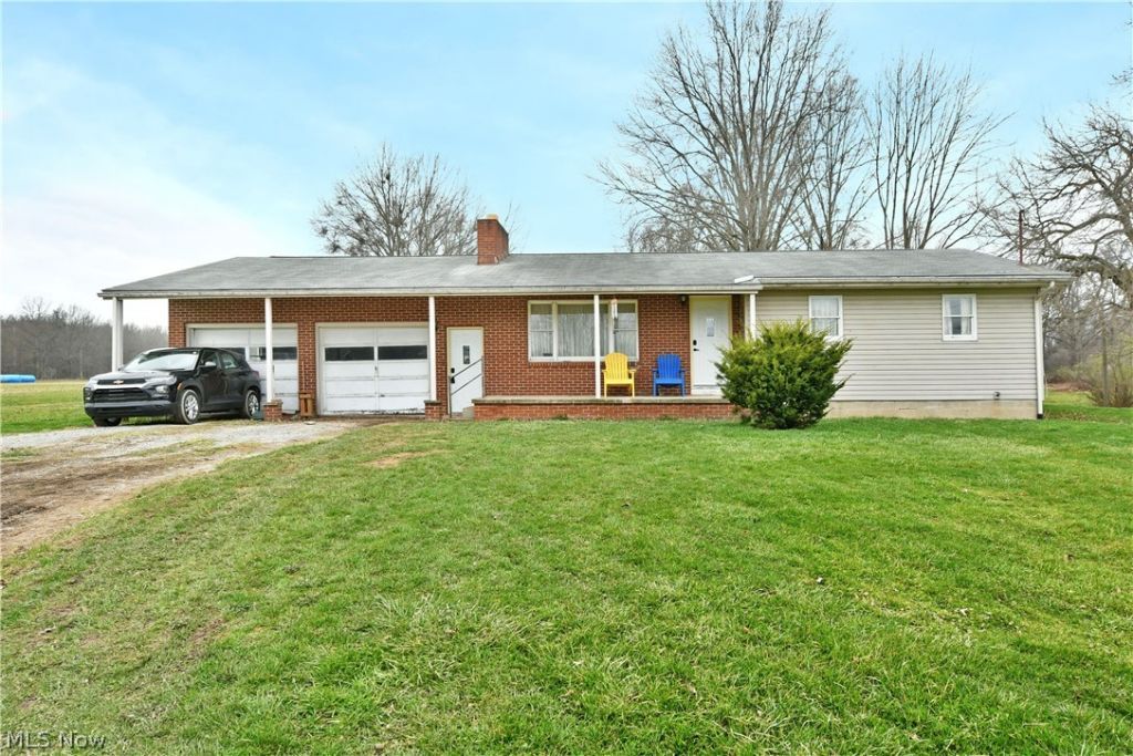 Potential, potential, and potential! This endearing Bristolville residence checks all the right boxes for a perfect project, ready to receive your creativity with its great bones and even better layout! Serving up everyone's favorite ranch layout, the home ups the ante with a three-bedroom layout plus a full basement below with tall ceilings and a brick fireplace, allowing an easy opportunity for even more finished living space. Outside, the brick accents add to the covered, two-car garage and porch entrances, both with brand new and stylish entry doors. Rural surroundings ensure peaceful, scenic views as you make your way inside. A gracious living room enjoys a large picture window to introduce plenty of natural light. Take advantage of the impressive kitchen and combined central dining space as sliding doors open to the raised rear deck out back. A hidden pantry is located next to the garage access. Down the main hall, a brightly colored full bath is renovation-ready, while the trio of bedrooms completes the package to include a larger master with its own private half bath. Property is being sold AS IS, WHERE IS''. CASH ONLY! The seller is currently having the property re-surveyed and it will come with approximately 1.6 acres only!